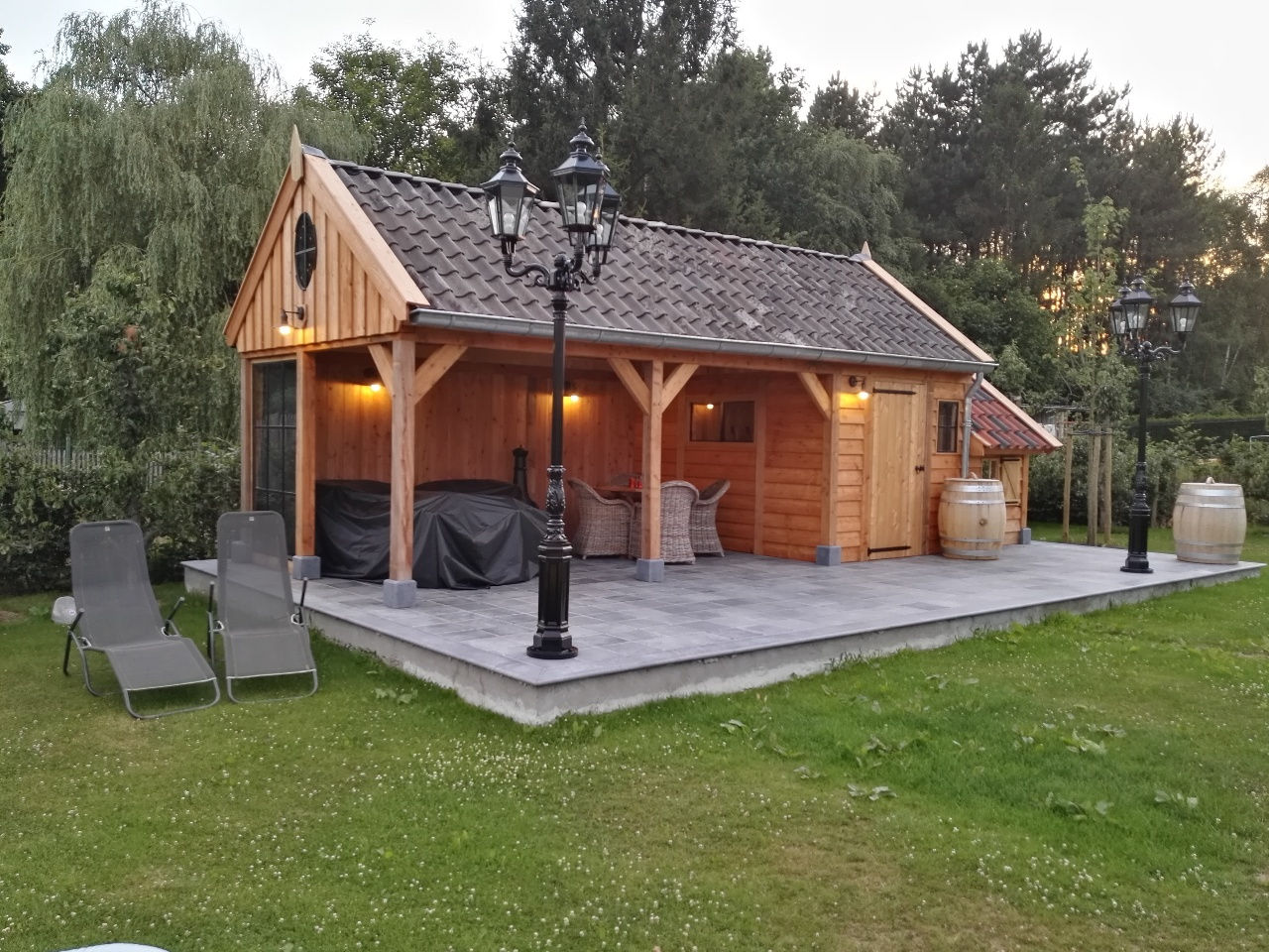 Dit eikenhouten tuinhuis met veranda biedt een sfeervolle en praktische uitbreiding van je tuin. Het gebruik van robuust eikenhout geeft het tuinhuis een warme, natuurlijke uitstraling die prachtig opgaat in elke buitenruimte. De veranda creëert een gezellige overdekte plek om te ontspannen en biedt bescherming tegen zowel zon als regen. Dit tuinhuis is ideaal als opslagruimte, hobbyruimte of extra zithoek, en blijft dankzij het duurzame hout jarenlang mooi en functioneel. Een karaktervolle toevoeging aan je tuin, waar je het hele jaar door van kunt genieten.